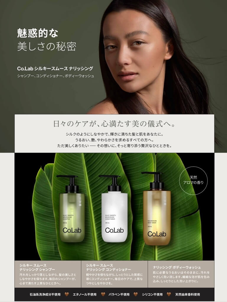 自然の恵みと最先端の科学。この2つの力を掛け合わせ、皆さまに「活力あふれる毎日を送っていただくこと」がパートナーコの役割です。自然の力がもたらすエネルギーと、科学の持つ革新性。両者の奇跡的なコラボレーションから生まれたのが、新しいブランド「Co.Lab」です。「コラボレーション(Collaboration)」と「ラボラトリー(Lab)」の言葉が織りなす世界を体感してください。 そして第一歩として、私たちが自信を持ってお届けするのが、「Co.Lab デイドロップ&ナイトドロップセット」です。